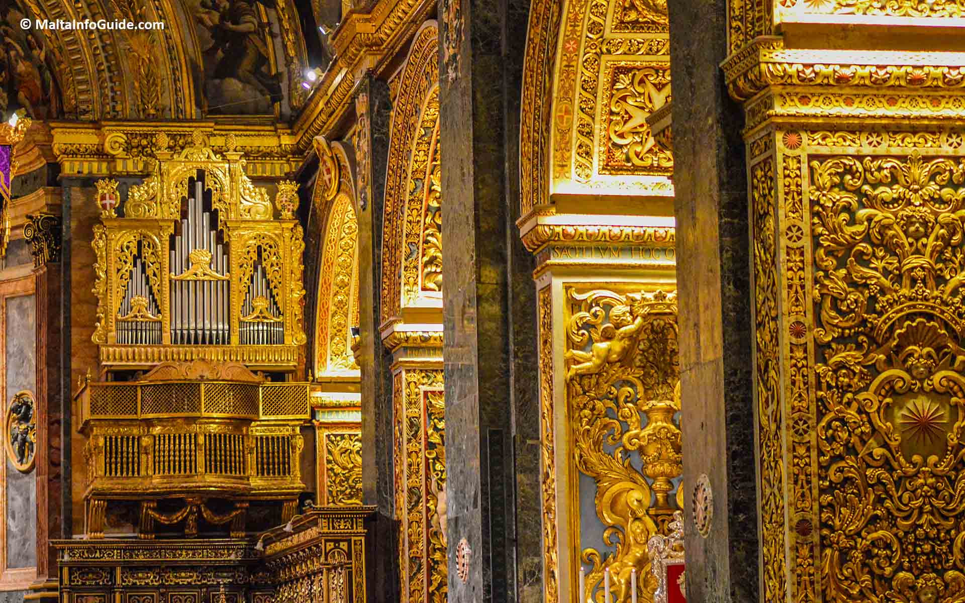 Up to the 1660s the cathedral was humbly decorated but Grand Master Raphael Cottoner ordered the renovation of the interior. Mattia Preti the artist from Calabria Italy was commissioned to embellish the interior with detailed carved stone wall designs finished with gold leaf gilding including the painting of the vaulted ceiling and side altars. They depicting the various scenes from the life of Saint John. The Knights of St. John were very decisive to spend and dedicate their resources for the best ornamentals for the cathedral.