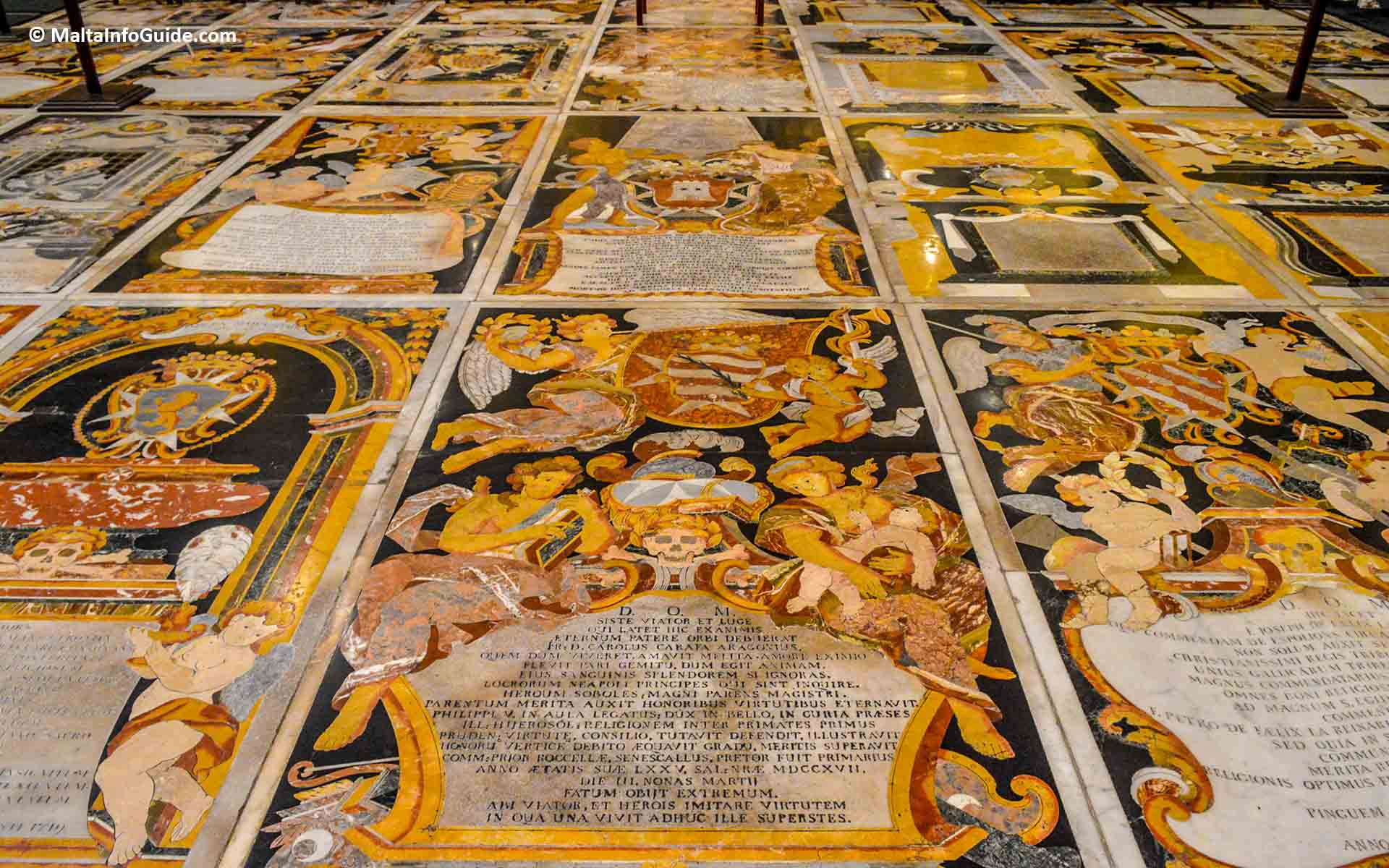The floor of the co-cathedral is covered with 400 marble carved tombstones with superbly intricate, marble-inlaid created by skilled tradesmen, tombstones create a formidable appearance to the large floors around all the church.